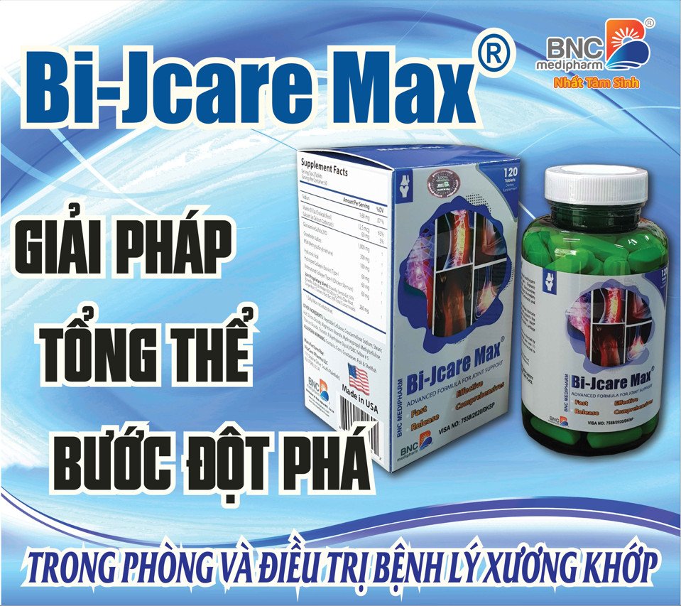 Bi-Jcare Max là viên uống bổ sung dinh dưỡng thiết yếu quan trọng nhất cho xương khớp giúp xương khớp chắc khỏe, hỗ trợ điều trị hiệu bệnh lý về xương khớp an toàn hiệu quả. Được nghiên cứu bới các nhà chuyên môn dược lý uy tín của Mỹ và sản xuất trên dây chuyền côn nghệ tân tiến hiện đại nhất hiện nay. Bi-Jcare Max được đích thân B.sĩ Th.sĩ Phan Đăng Bình khuyên dùng và lựa chọn đưa về Việt Nam.