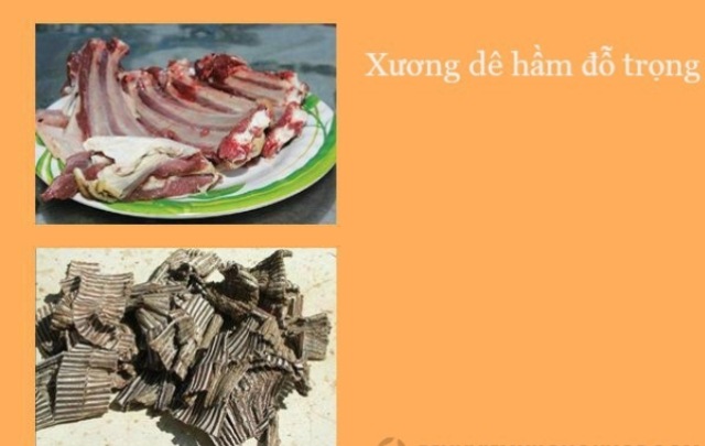 Cách tiến hành: Xương dê đem rửa sạch rồi chặt hay dùng chày đập cho nhỏ bớt. Gạo đem vo sạch rồi để ráo nước, đỗ trọng đem xay nhuyễn thành bột, gừng rửa sạch rồi thái lát, vỏ quýt cũng đem rửa sạch để ráo.